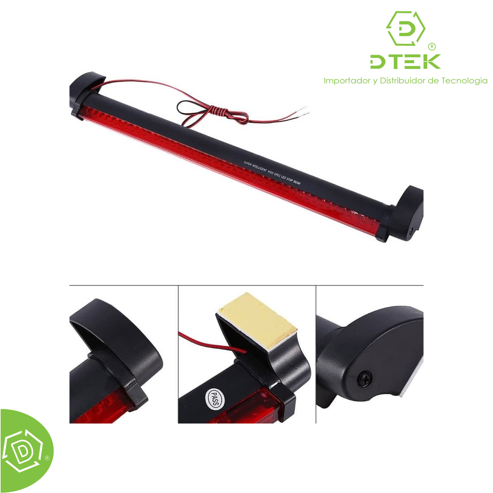 Barra de luces de freno LED universal de 12V rojo 48 Tercera luz trasera montaje alto color rojo de advertencia niebla Fácil de instalar y cableado como soporte autoadhesivo y no se requiere cableado de relé debido a su naturaleza de bajo consumo de energía. Alimentado por DC 12V, carcasa resistente al calor y de ahorro de energía. Da una advertencia adicional al vehículo que va detrás cuando estás a punto de detenerte. 48 luces LED emiten una luz roja y son tan brillantes que otros automovilistas no la perderán. El ángulo del soporte es ajustable para que pueda colocar la luz trasera LED de forma más efectiva. Se fija fácilmente a la ventana trasera o al estante para paquetes con almohadillas adhesivas (incluidas). Utilice la luz de freno LED para protegerlo a usted, a sus pasajeros y a su automóvil de golpes innecesarios. Se adapta a la mayoría de automóviles, furgonetas y camiones. Para instalar dentro del automóvil, no se sugiere para la instalación exterior del automóvil.